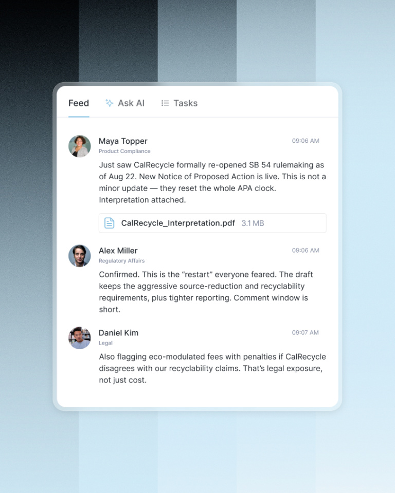 Every single government body is monitored, including those driving “horizontal” regulations like PFAS or EPR